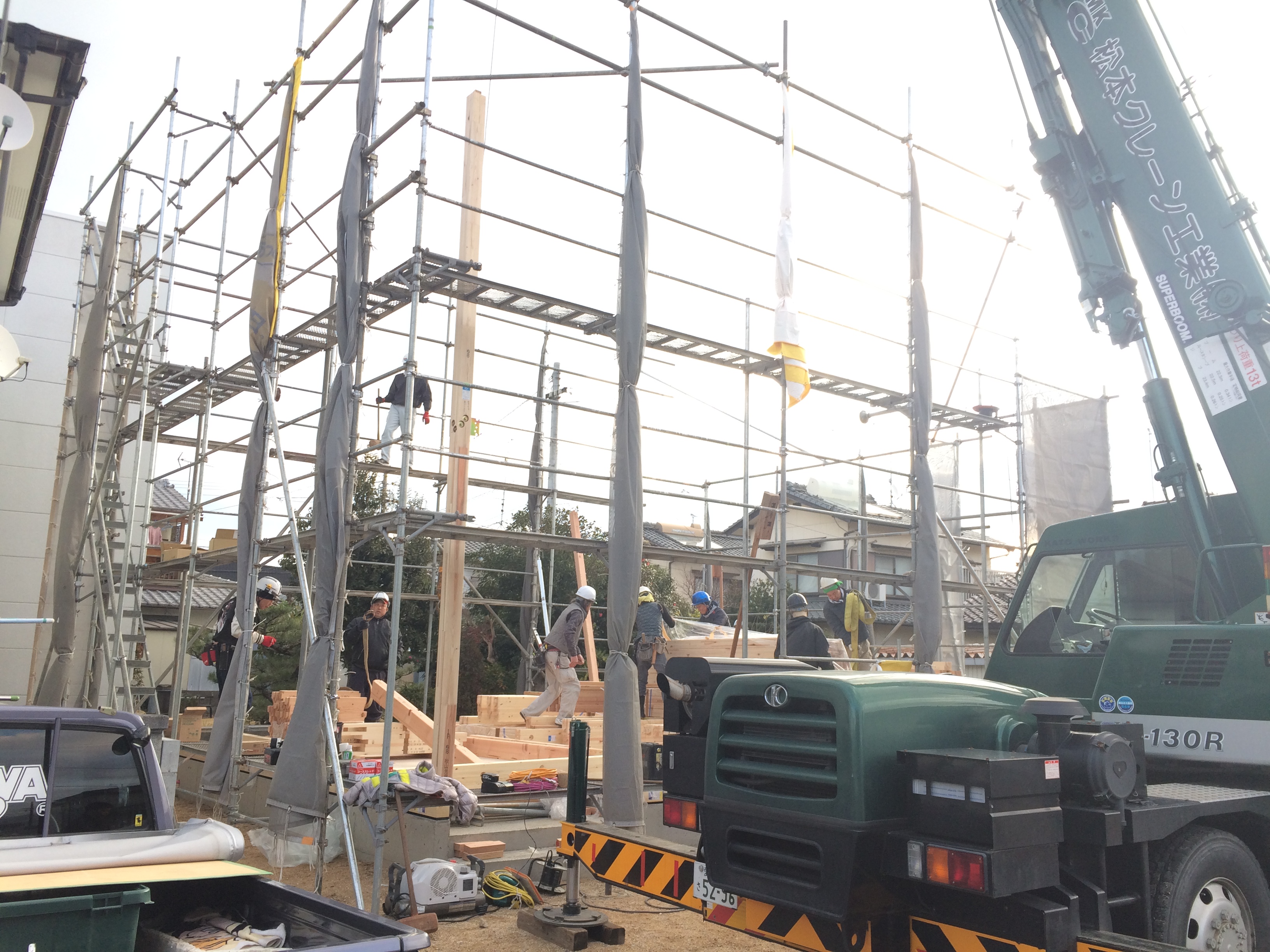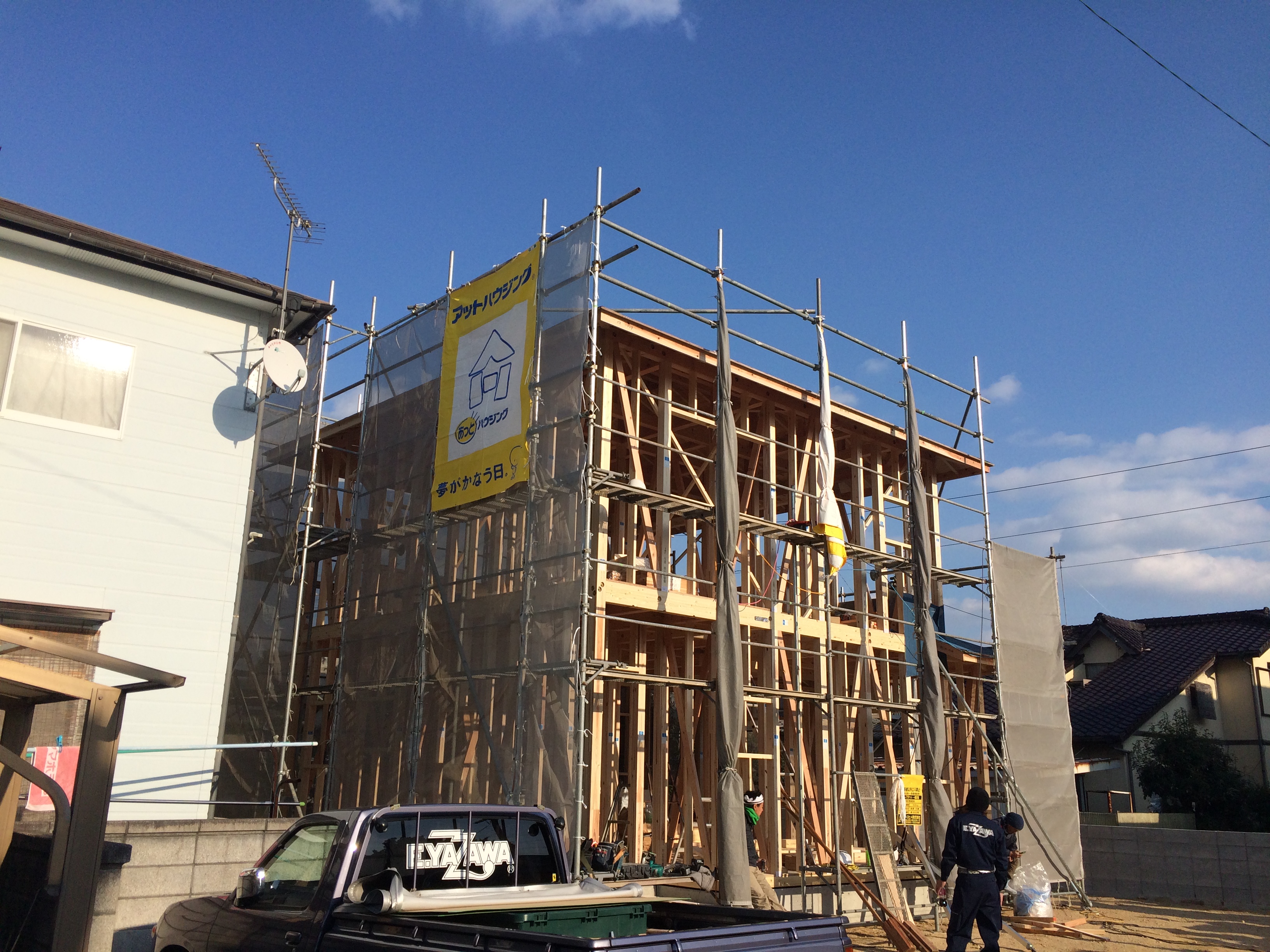 天気にも恵まれ絶好の上棟日和になりました![]()