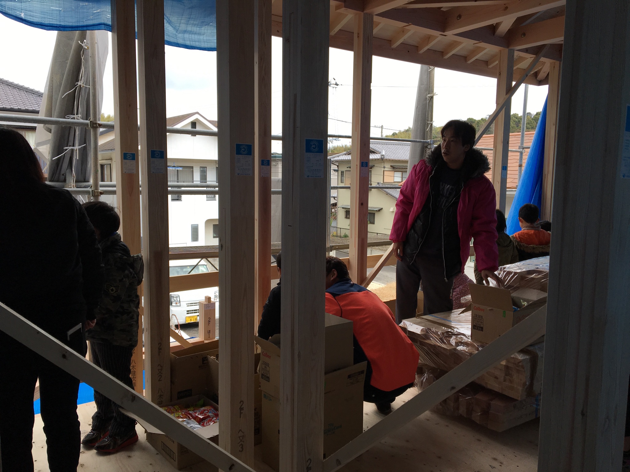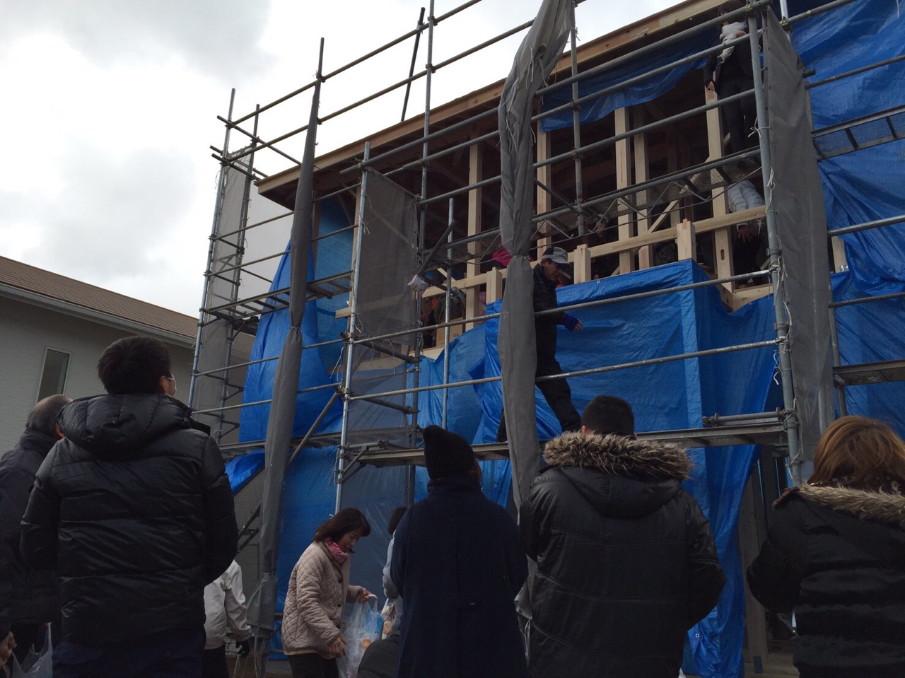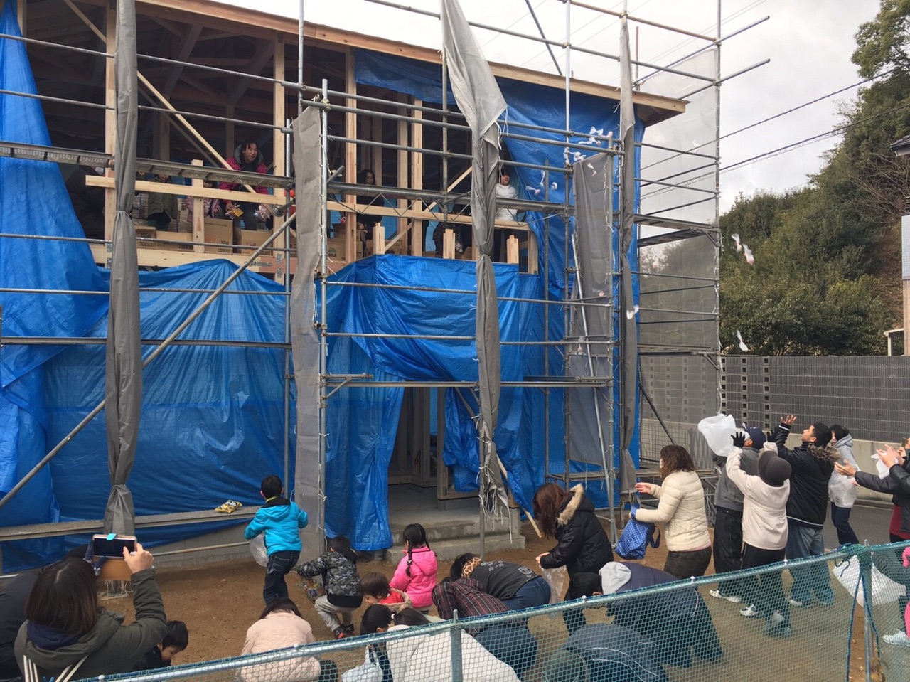 今日は波方町郷でご建築中のY様邸の餅まきが行われました![]()