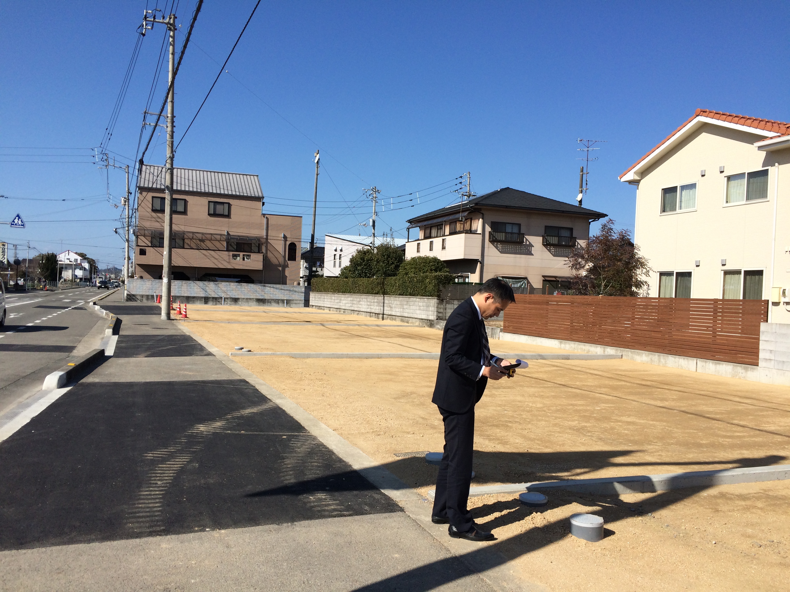 桝や境界の位置、道路の幅など一つ一つ確認をしていきました![]()