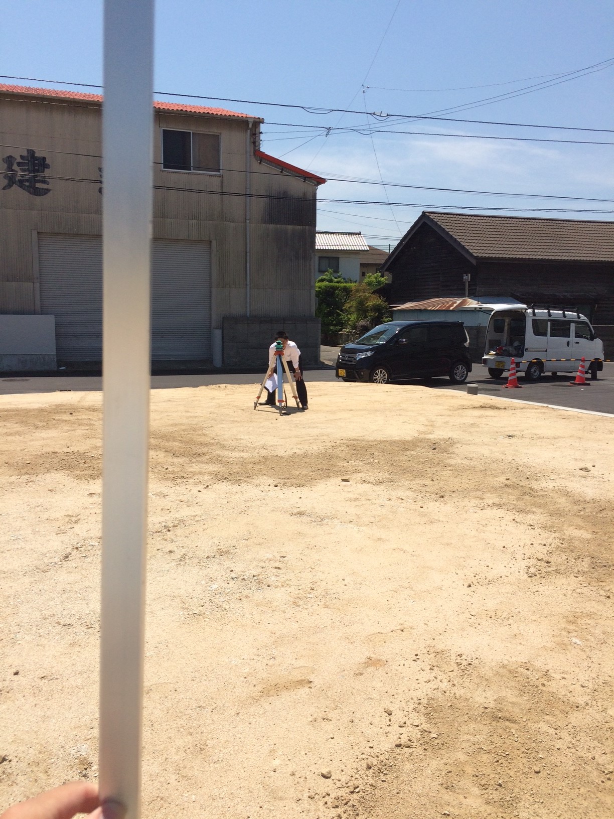 現場監督の石丸と敷地の高さ等を測りました![]()