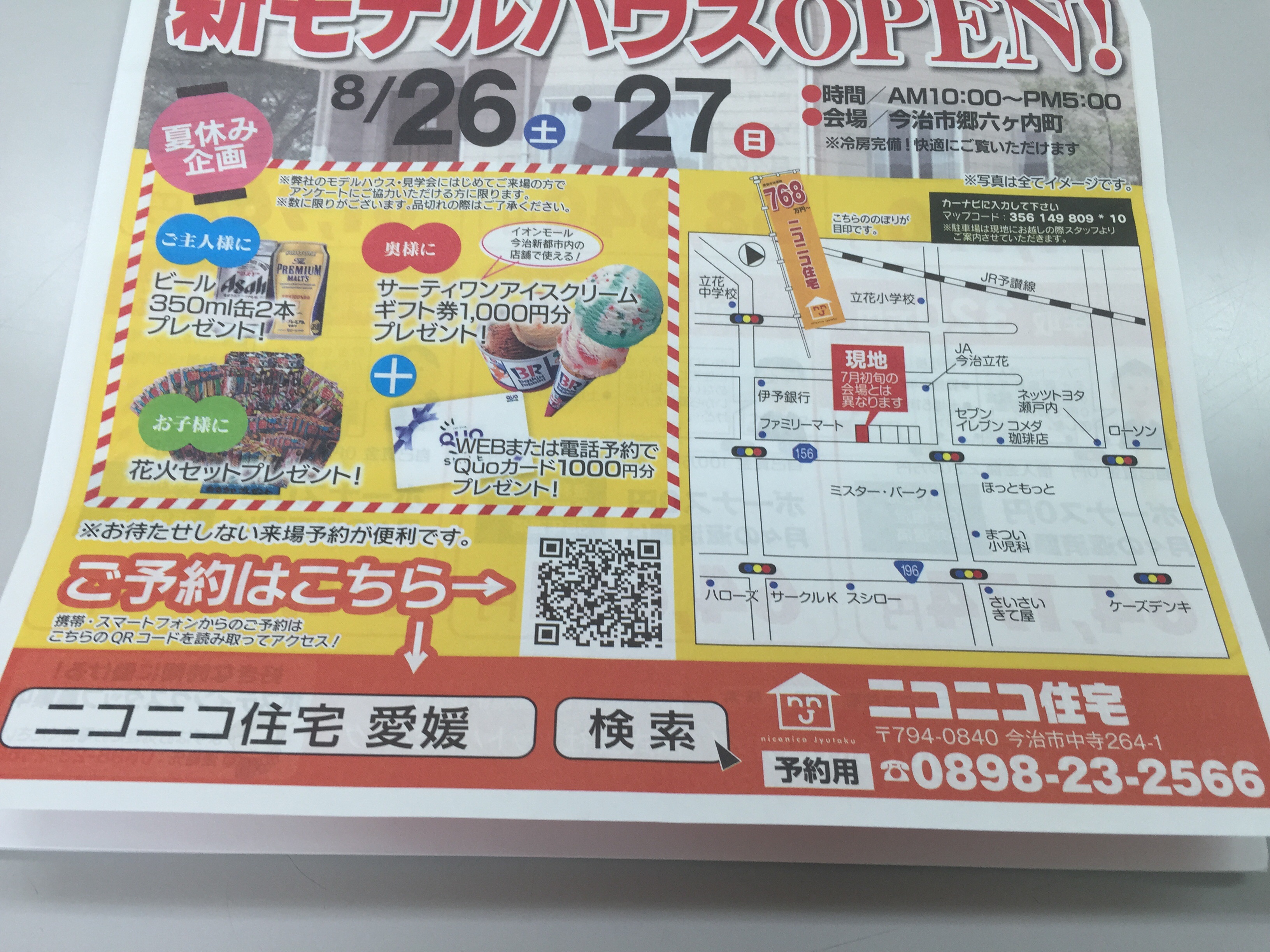 場所は今治市郷六ヶ内町でO様邸のご厚意で完成見学会を開催致します(≧∇≦)