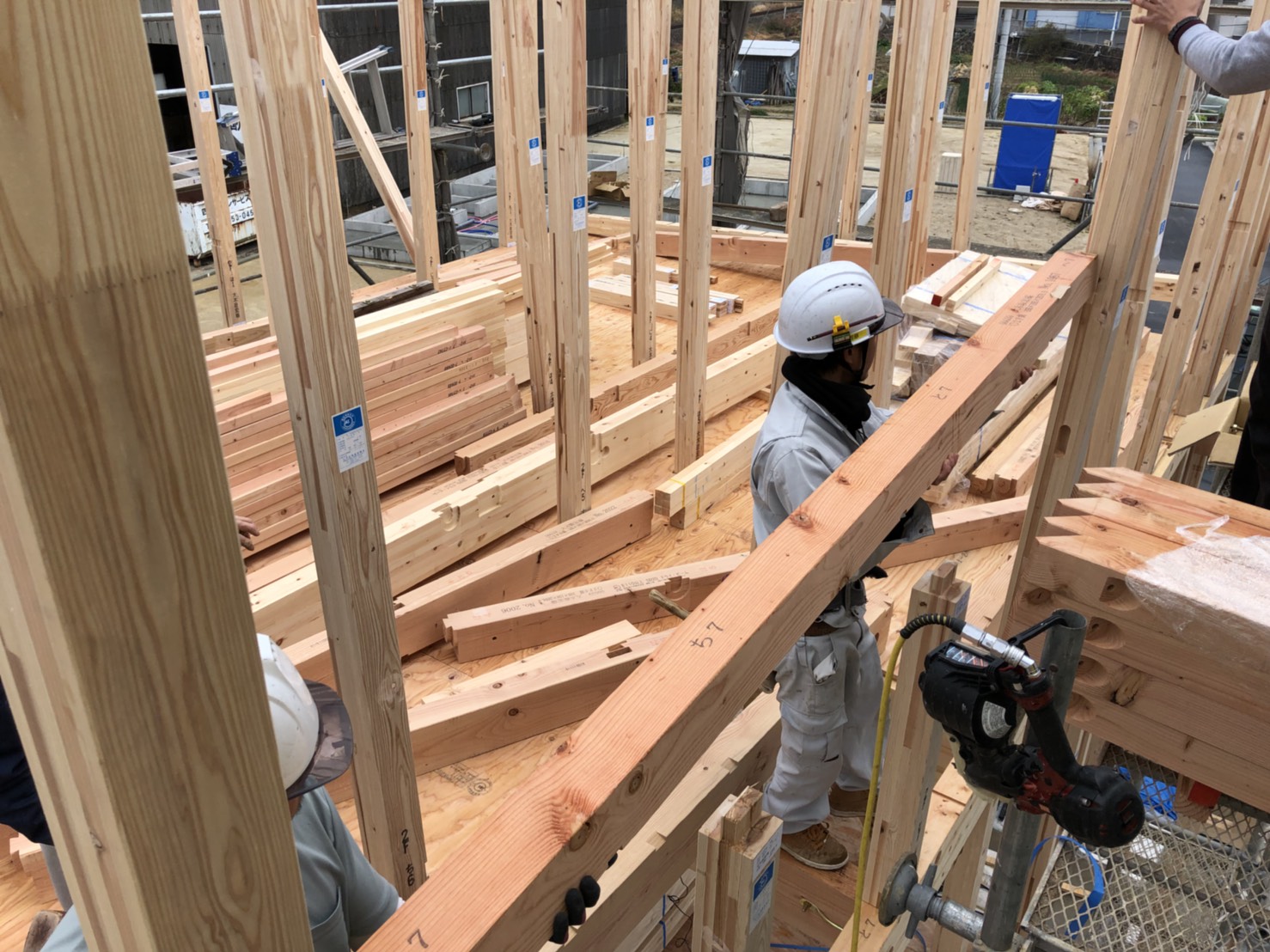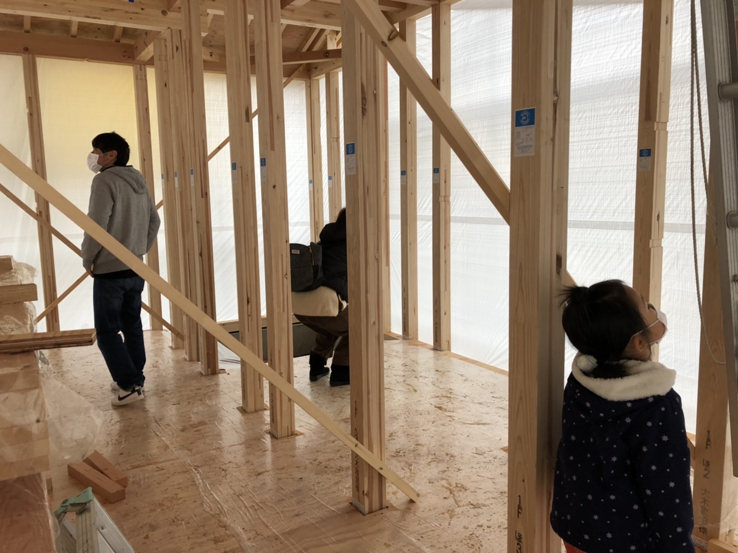 夕方には無事に棟が上がりご家族皆様で中を見学(╹◡╹)