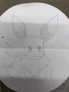 周りの緑の線は息子が思うがままに描いたのですが、草だそうで『草原の中のイーブイ』なんだとか…