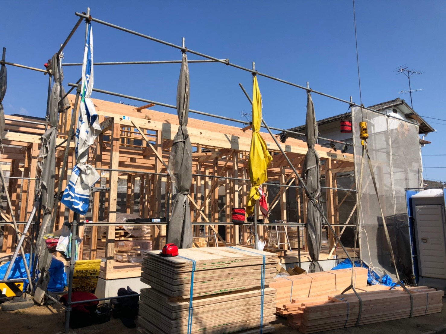 先日、今治市桜井団地で建築中のO様邸の上棟を行いました!