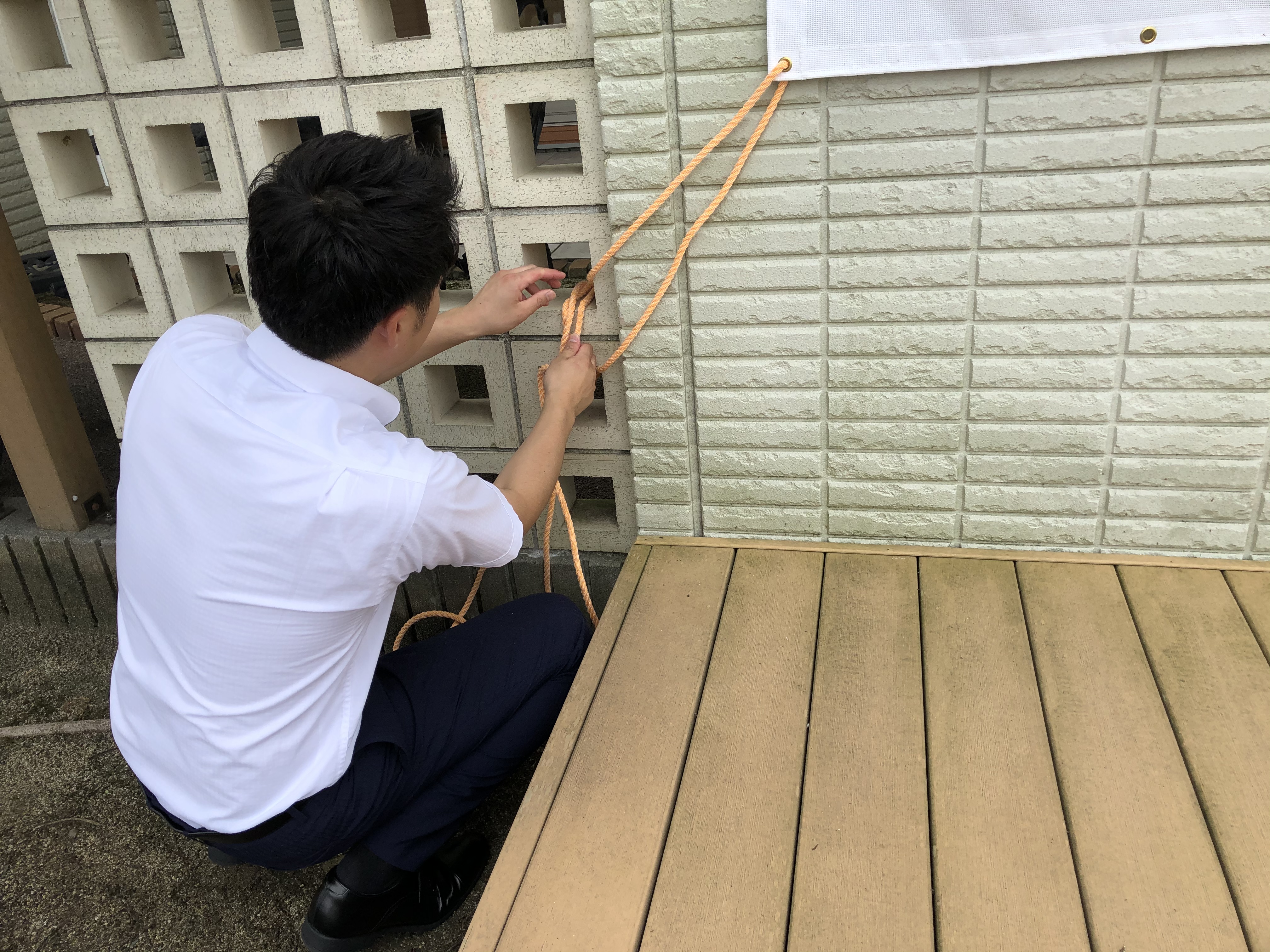 さて先日、今治店モデルハウスの懸垂幕の付け替えを行いました![]()
