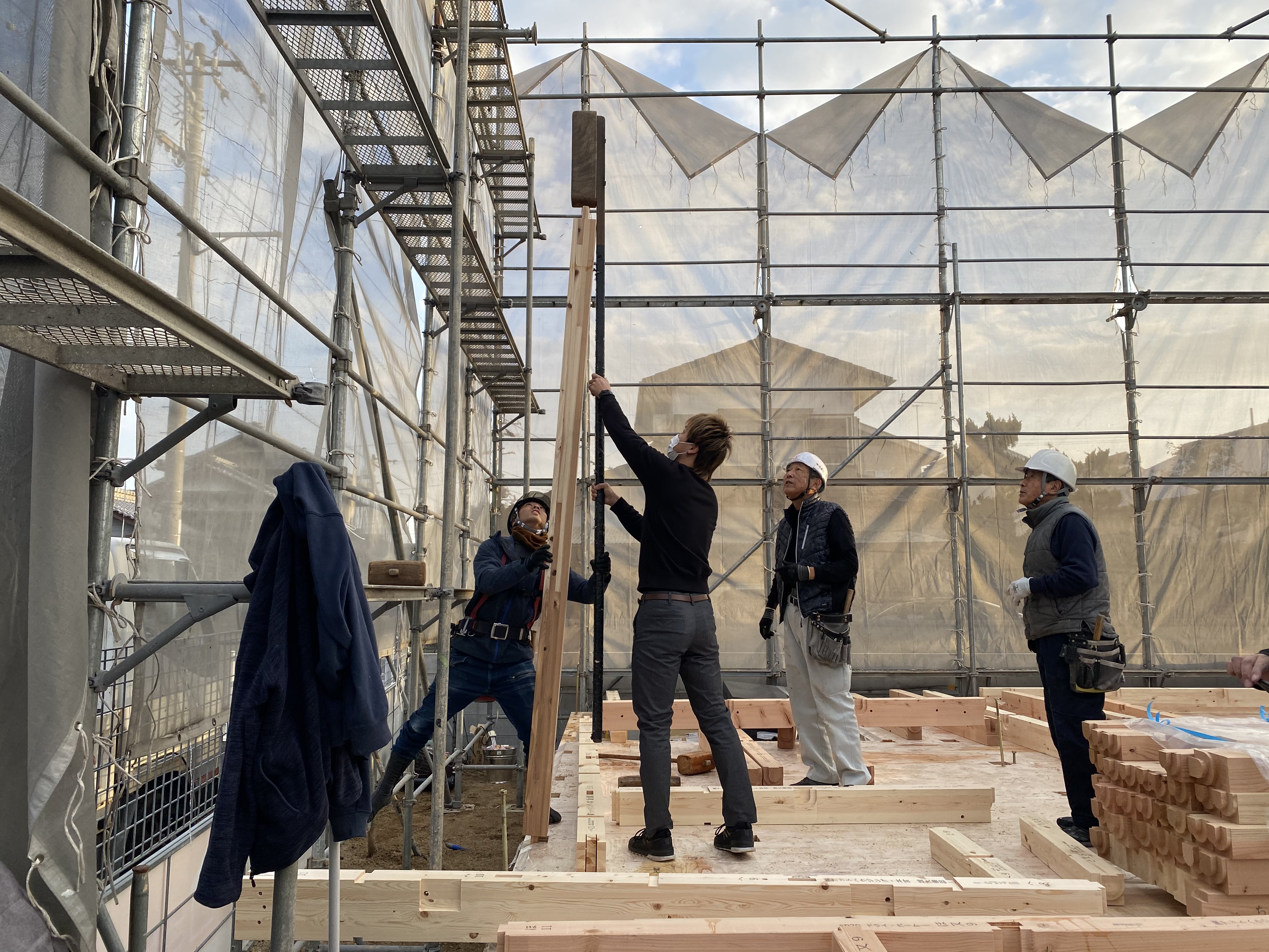 連日に比べて暖かく、上棟日和の一日となりました(^^♪