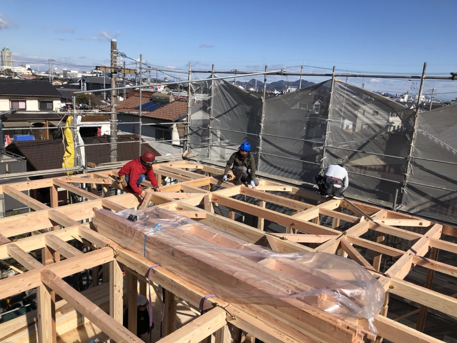先日、今治市土橋町で建築しておりますモデルハウスの上棟を行いました(^^♪