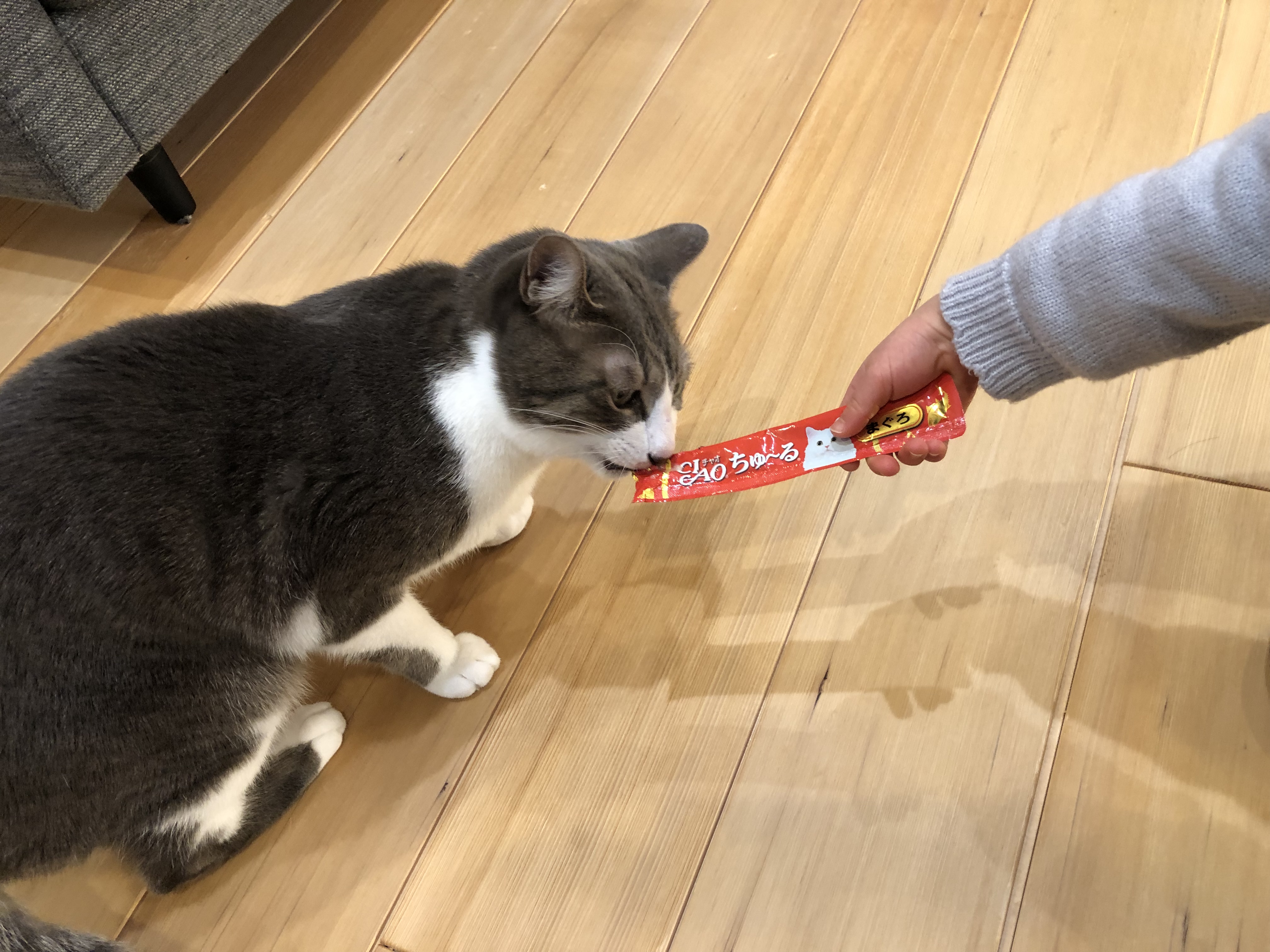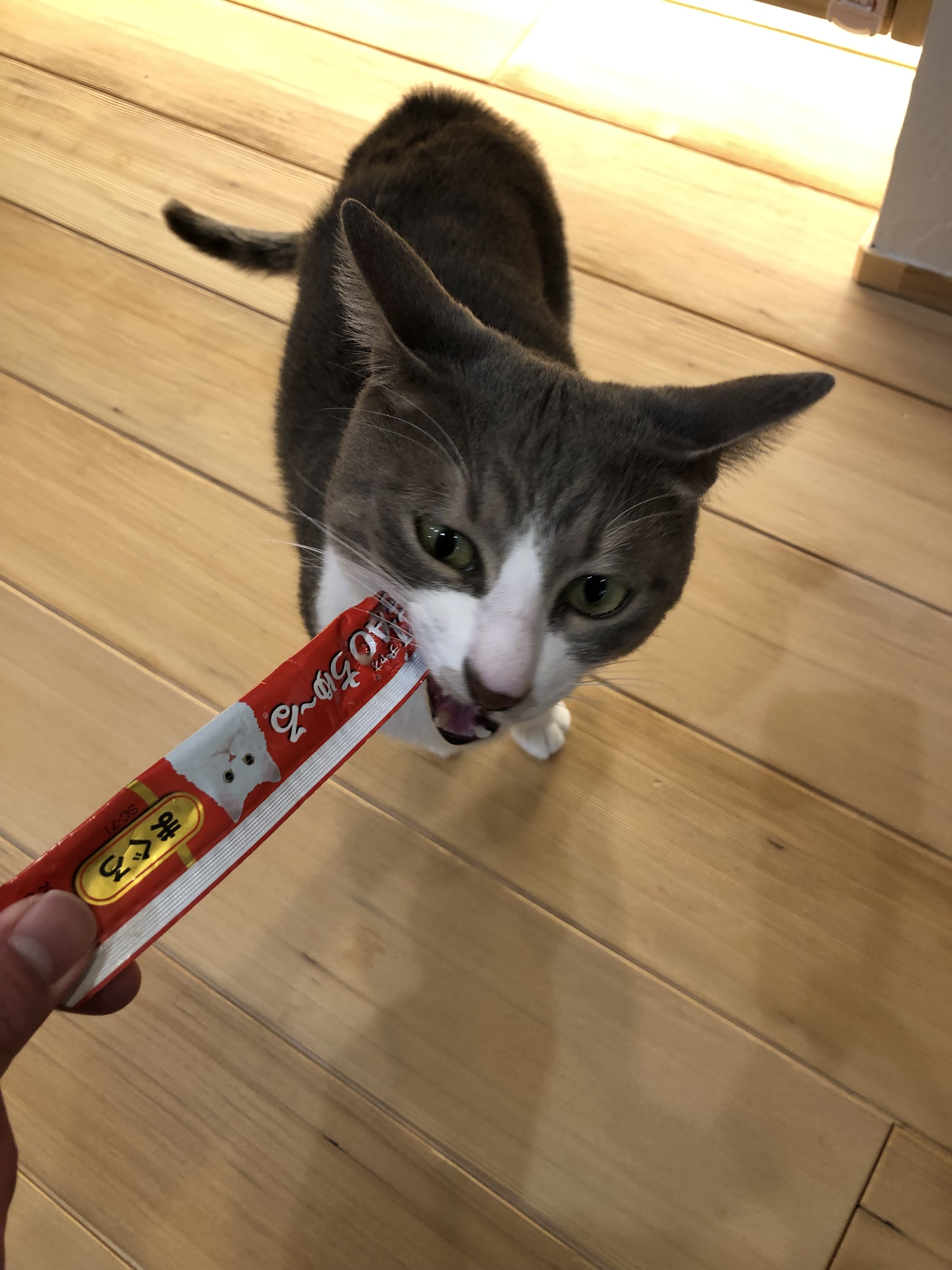 普段はカリカリがご飯の諭吉さんも、娘からチュールを頂いております![]()
