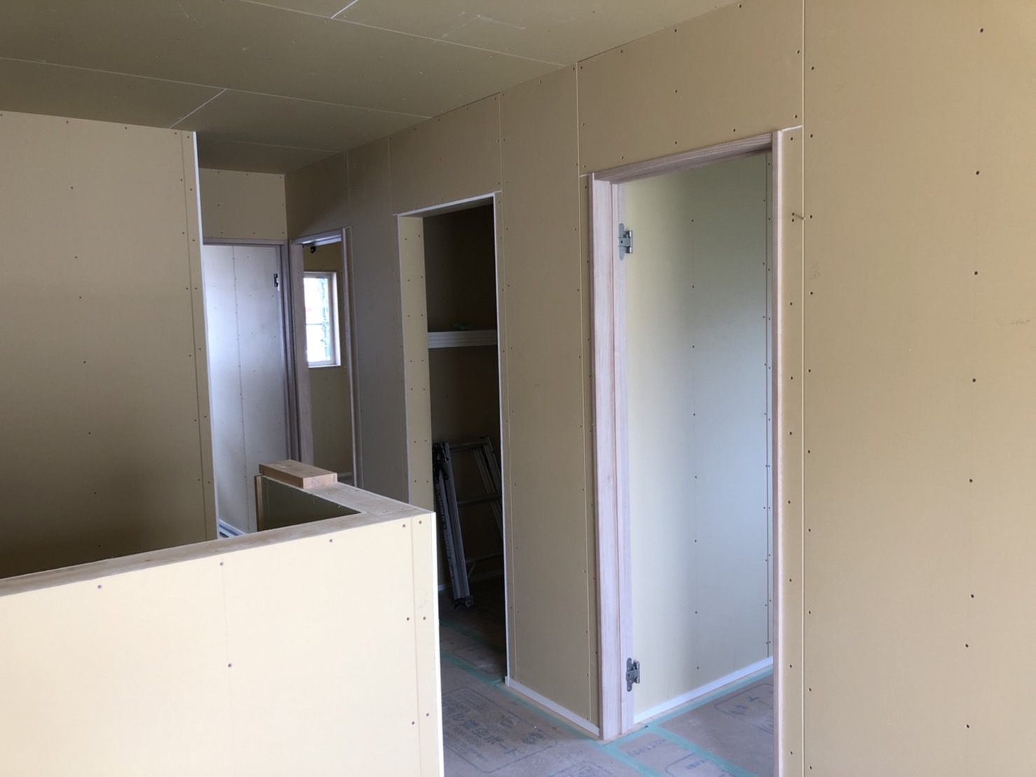 断熱材などの設置が完了し、壁のボードも施工しました![]()