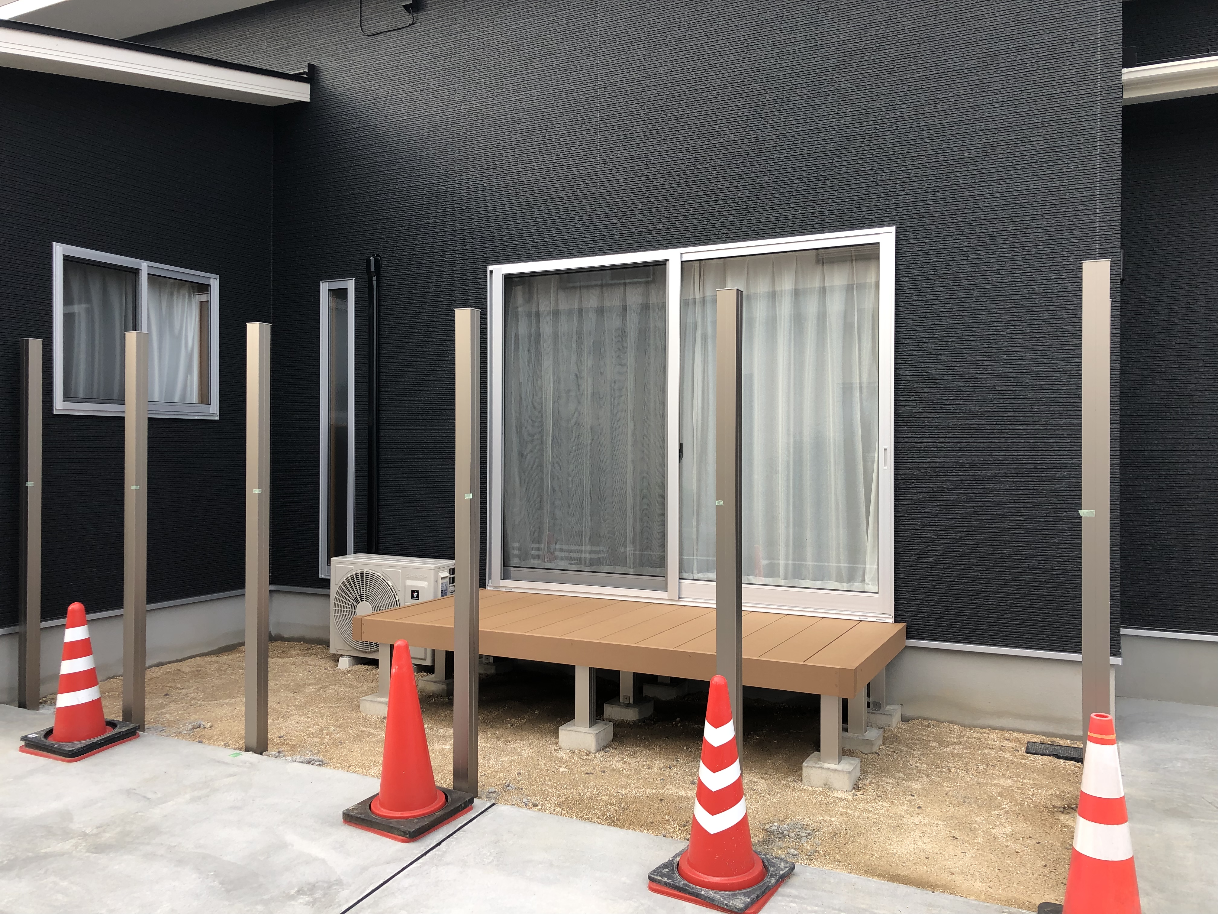 どのモデルハウスも外構工事をしているのですが、ウッドデッキをつけるのははじめてだったので楽しみでした(*^^*)