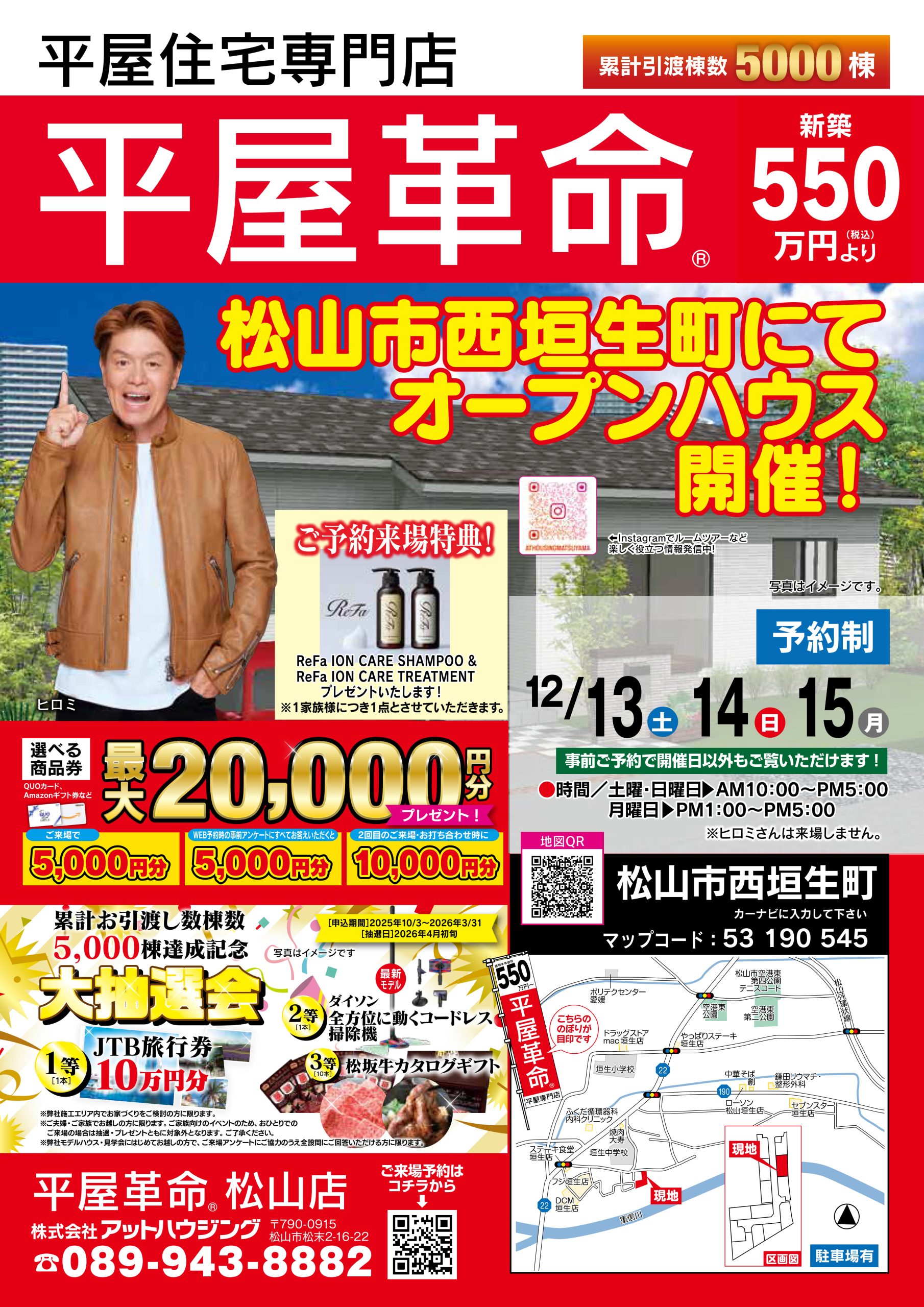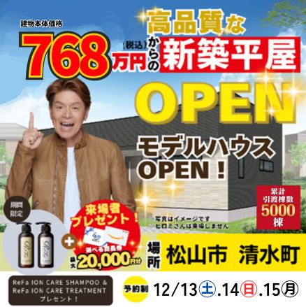 担当の対応が早くて良い!【12/13~12/15松山市清水町モデルハウス見学会・松山市西垣生町オープンハウス見学会】(松山店)