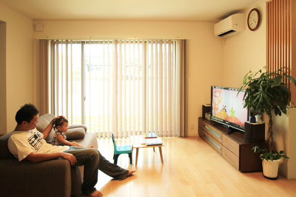 リビングには畳コーナーを設けました。畳下の収納にはたっぷりと収納スペースが確保されているので広々とした空間が広がります。 全体的に、お子様に目が行き届くようなプランになっています。