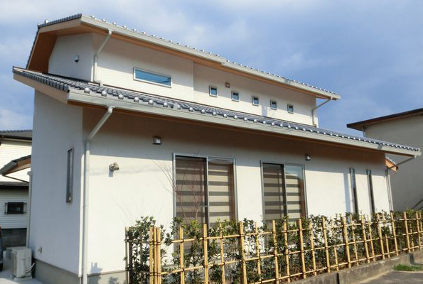 銀色の屋根と白い塗り壁で、明るく堂々とした印象の家