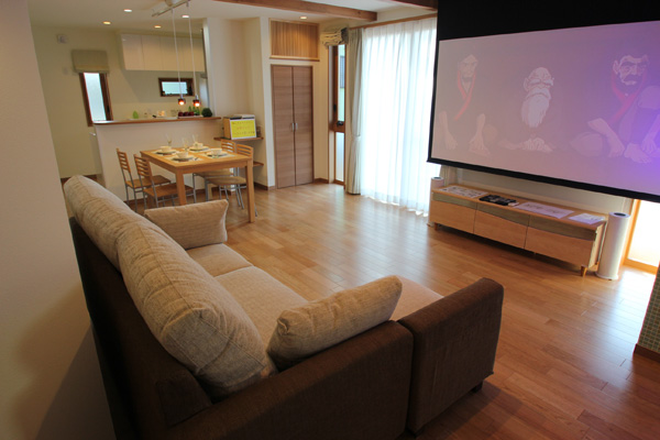 こだわりのホームシアターでは、100インチの画面で映画等を楽しむことができます。