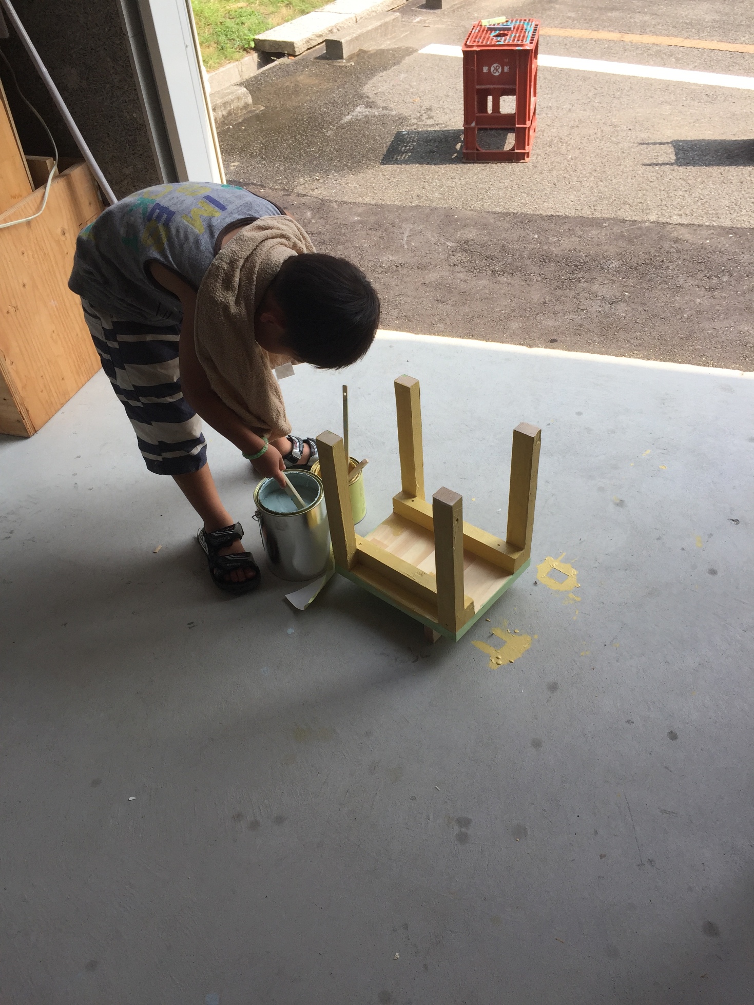 お子様の夏休みの宿題ということで、椅子と机を作成しに来店されました~~